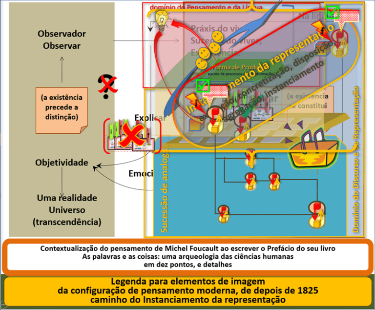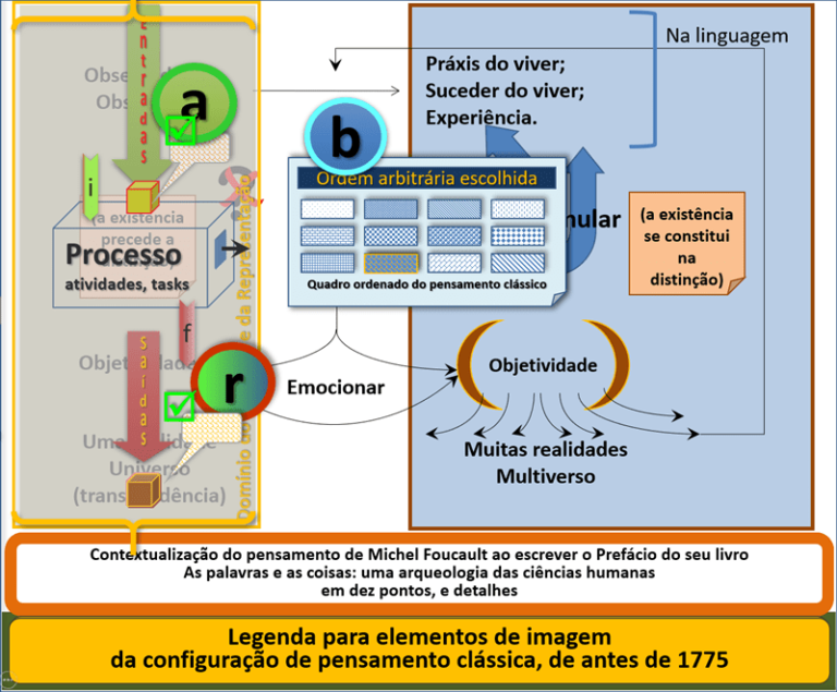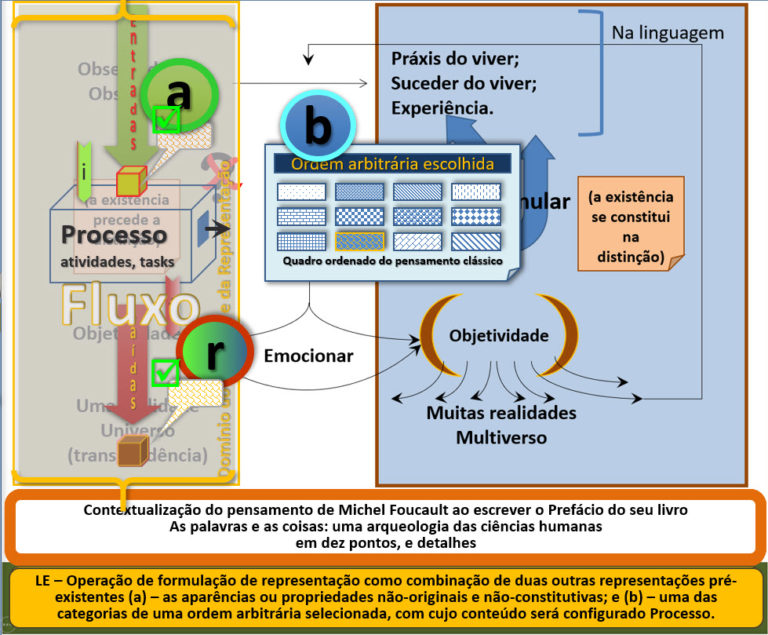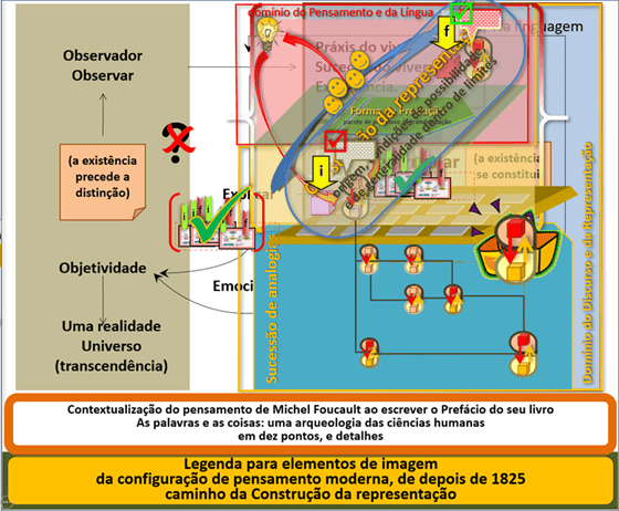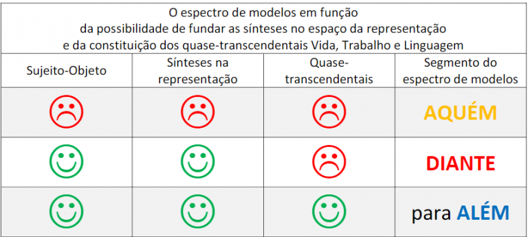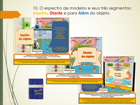 - O espectro de modelos com três segmentos – AQUÉM, DIANTE e para ALÉM do objeto, traçado a partir dessa visão e da forma de reflexão que se instaura em nossa cultura, por Michel Foucault
