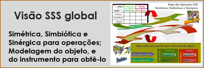 - A visão SSS – Simétrica, Simbiótica e Sinérgica, para organizações de qualquer tipo: modelagem simultânea do objeto esperado, e do instrumento necessário para obter esse objeto