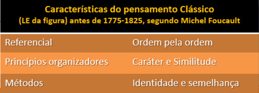 - Conceitos homônimos mas com significados diferentes entre o pensamento clássico, o de antes de 1775, e o moderno, o de depois de 1825, segundo Michel Foucault;