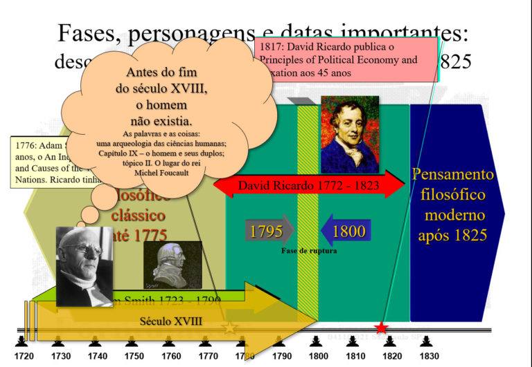 Essa cronologia posiciona Adam Smith e David Ricardo em lados opostos desse evento, ao qual Foucault atribui o papel de ‘evento fundador da nossa modernidade’ no pensamento.