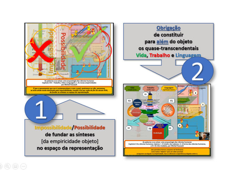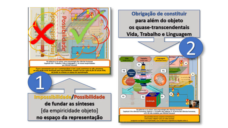 - e uma obrigação de abrir o campo transcendental da subjetividade constituindo, para além do objeto, os quase-transcendentais Vida(Biologia), Trabalho(Economia) e Linguagem(Filologia).