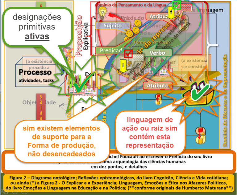 - As duas opções alternativas para a visão do fenômeno ‘operações’, com diferentes abrangências, e as respectivas duas origens do valor carregado pelas proposições para as representações; as correspondentes duas configurações de funcionamento da própria linguagem e do pensamento, e os modelos resultantes em cada caso.