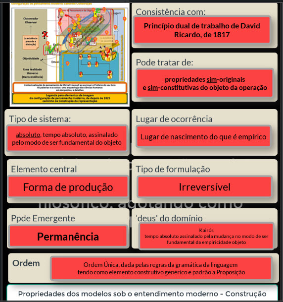 Isso coloca os modelos feitos com essa possibilidade de leitura e análise respectiva de valor  no segmento do espectro de modelos diante do objeto, e organizados pelo par sujeito-objeto, no perfil de pensamento característico de depois da descontinuidade epistemológica de 1775-1825.